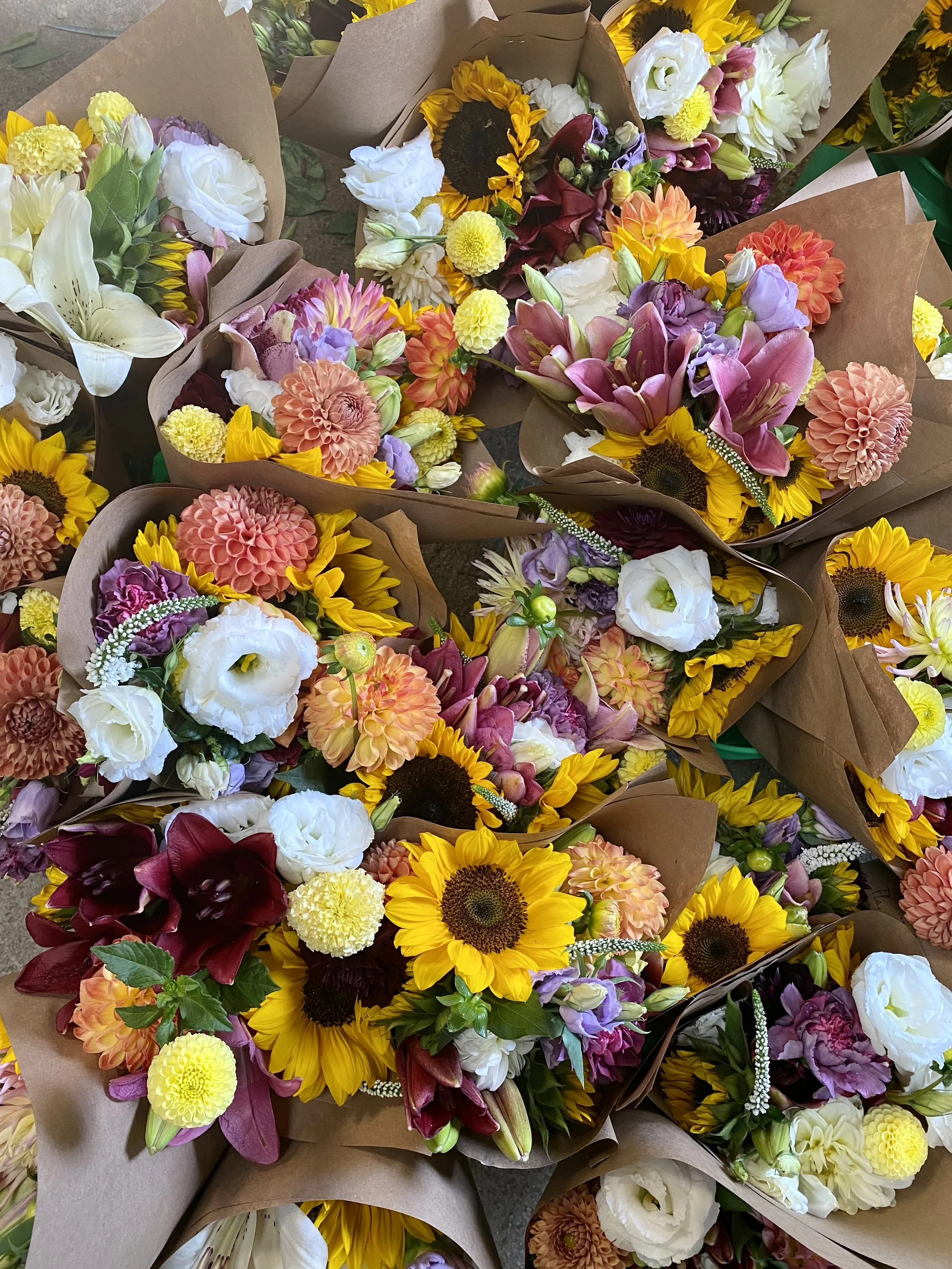 Our subscription bouquets are a fuller version of our classic market bouquet! We reserve our most premium and specialty blooms for our subscriber bouquets. And they are delivered right to your door step every Wednesday May-October. Click >>> here for more detailed information.